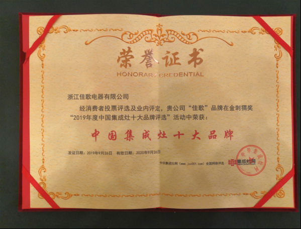 一直以來,佳歌集成灶始終致力于為千萬中國家庭創(chuàng)造健康、環(huán)保、科技、智能的綠色健康廚房。此次獲得“中國集成灶最具消費(fèi)者喜愛十大品牌”,是對佳歌的品牌、質(zhì)量、技術(shù)等方面最大的肯定。