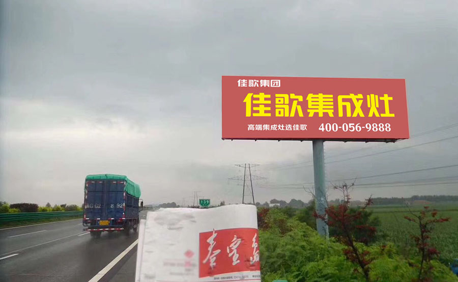 佳歌將會(huì)成為全國(guó)高速公路上亮麗的風(fēng)景,抬眼間就能將佳歌集成灶幾個(gè)大字映入眼簾,也將佳歌的廣告大化的呈現(xiàn)在大家的視覺中,增加了品牌的傳播力與知名度。