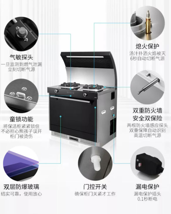 發(fā)生燃氣泄漏意外時,佳歌集成灶氣敏探頭靈敏感應,迅速切斷氣源,開啟煙機,將溢出的燃氣排出室外,杜絕危險。