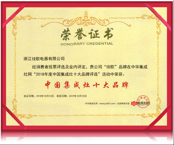 佳歌集成灶榮獲2019年集成灶行業(yè)“大滿貫”,這僅僅是開始