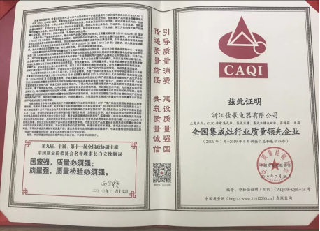 全國集成灶行業(yè)質量領先企業(yè)