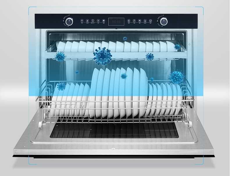 傳統(tǒng)的雙抽式消毒柜由于空間分隔的關(guān)系,導(dǎo)致7寸以上的盤子只能疊放,消毒烘干對中間的盤子根本無法起效,而10寸的大盤只能放在臺面上“流浪”。