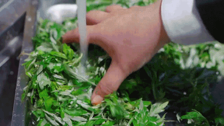 2. 擇好的艾草洗凈下鍋煮沸,起鍋后切碎,也可以用榨汁榨碎。分多次加入糯米粉和少量面粉,倒入熱水和成面團(tuán)。