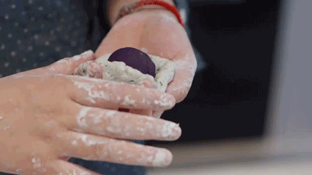 不同餡料的青團(tuán)口感不一,這次我們準(zhǔn)備了豆沙、蛋黃肉松和紫薯三種不同餡料,無(wú)論甜黨還是咸黨,包你滿意~