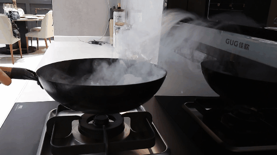 我們使用煙餅?zāi)M炒菜,檢測(cè)佳歌A6DZK的排煙性能,肉眼可見產(chǎn)生的濃煙被悉數(shù)吸走,煙霧幾乎沒有逸散。