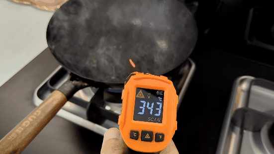A6DZK的燃?xì)庠顭嶝?fù)荷為5.0kW,實(shí)測(cè)在大火狀態(tài)下,耗時(shí)2分鐘左右,炒鍋表面的油溫就達(dá)到350℃以上,用于油炸、爆炒都很合適。